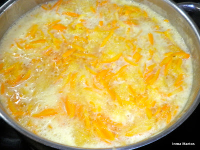 Una vez bien lavadas, las pelamos, partimos la cáscara en tiritas lo más finas posible