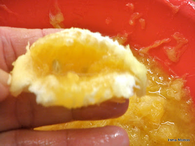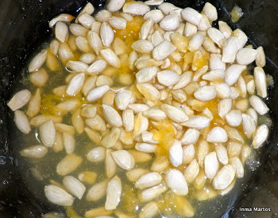 EliminarHola, tengo la la pulpa, la cascara y las pipas en el primer paso, lo he hecho esta tarde. No se cómo quedará pero para facilitar el pelado de la cascara he utilizado un pelador de los que te sacan tiras finas y no coge nada de lo blanco y he terminado rápido .