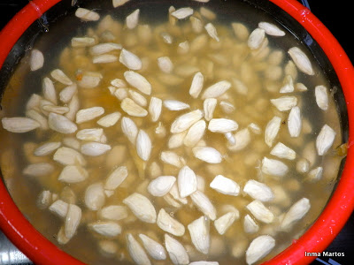 Al día siguiente pasamos el agua de las semllas por un colador, y la echamos a las cáscaras y pulpa